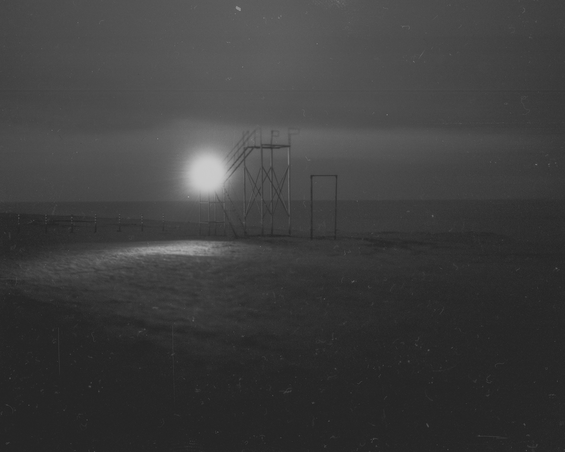 Arabat Spit located in the northeast of the Crimean peninsula. Until 1955, the whole territory of the spit was a part of Crimean ASSR, and later its northern part was transferred to the Kherson region. The passing here boundary was conditional because it had separated the parts of one country. In March 2014, in one day, this borderline became a gray contour, a symbol, which used in maps to mark disputed territories. For Ukraine Crimea is a temporarily occupied territory, for the Russian Federation - it is a part of the country. The rest of the world in unequal parts either supports one of the parties or maintains neutrality. This series of photos was taken in Arabat Spit and represents a non military objects which can be easily taken as military ones in the night. The feeling of disorientation and clear knowing of situation at the same time – became true companions of locals.